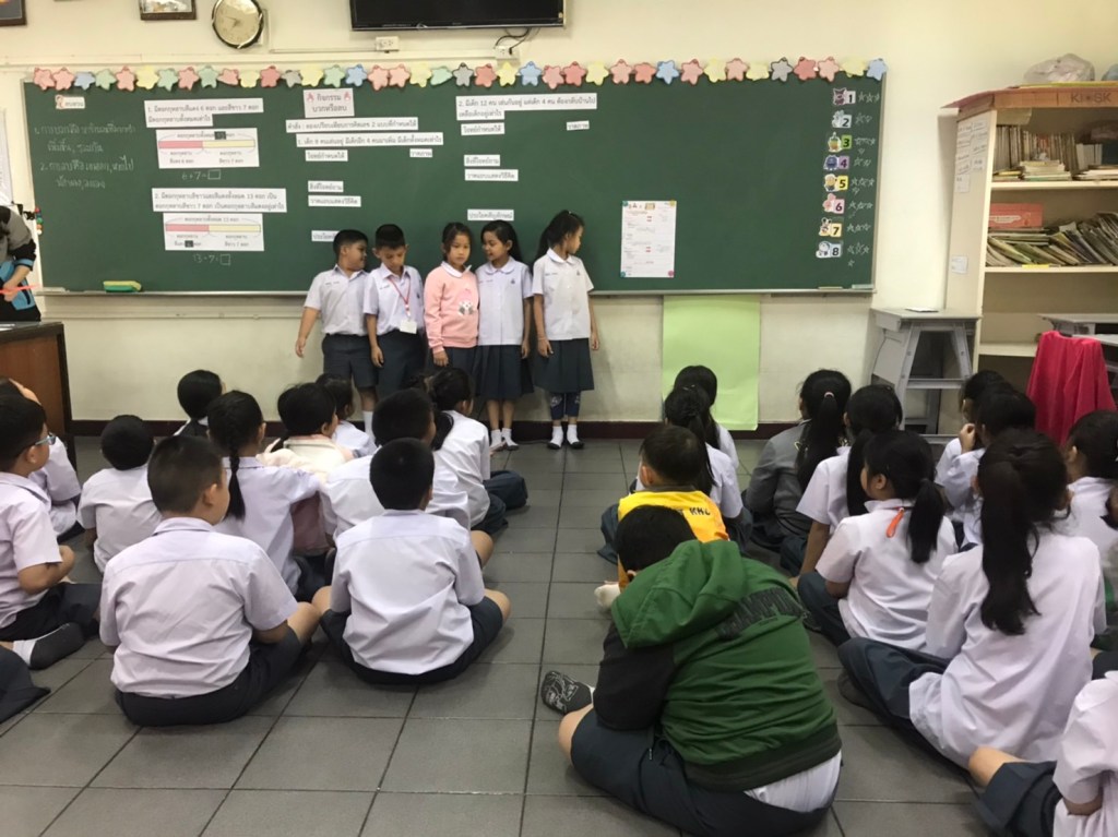 “Sawadeka, Aja SUZUKA” . The students greet all teachers with their hands facing and making eye contact with teacher. I ’m a little shy and I ’m holding hands and listening to the words.